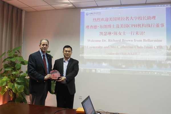 Dr. Richard Brown分別從地理位置、發(fā)展歷史、專業(yè)課程設(shè)置、國際合作項目開展等方面介紹了美國貝拉名大學(xué)的情況。他表示,很高興來到美麗的安徽新華學(xué)院,希望能夠通過此次訪問,推進(jìn)兩校之間國際合作項目的開發(fā)。